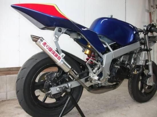 スチール製チャンバー。パワーバンド8,500〜13,500rpmの高回転高出力タイプ。「タイプ3」は2本出し、「タイプ4」は異形サイレンサー2本出し、「タイプS」はステンレス手巻きチャンバー。